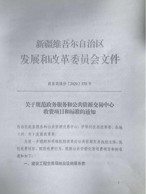 关于规范政务服务和公共资源交易中心收费项目和标准的通知