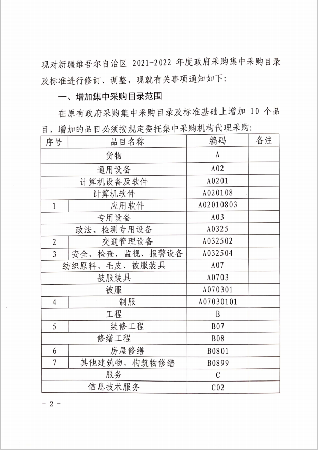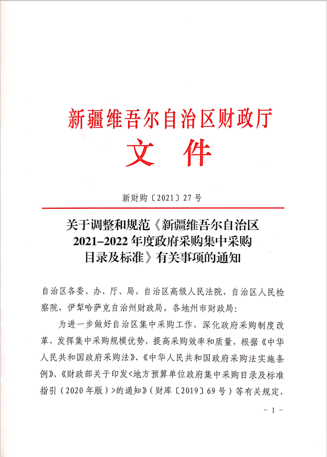 关于调整和规范《新疆维吾尔自治区2021-2022年度政府采购集中采购目录及标准》有关事项的通知