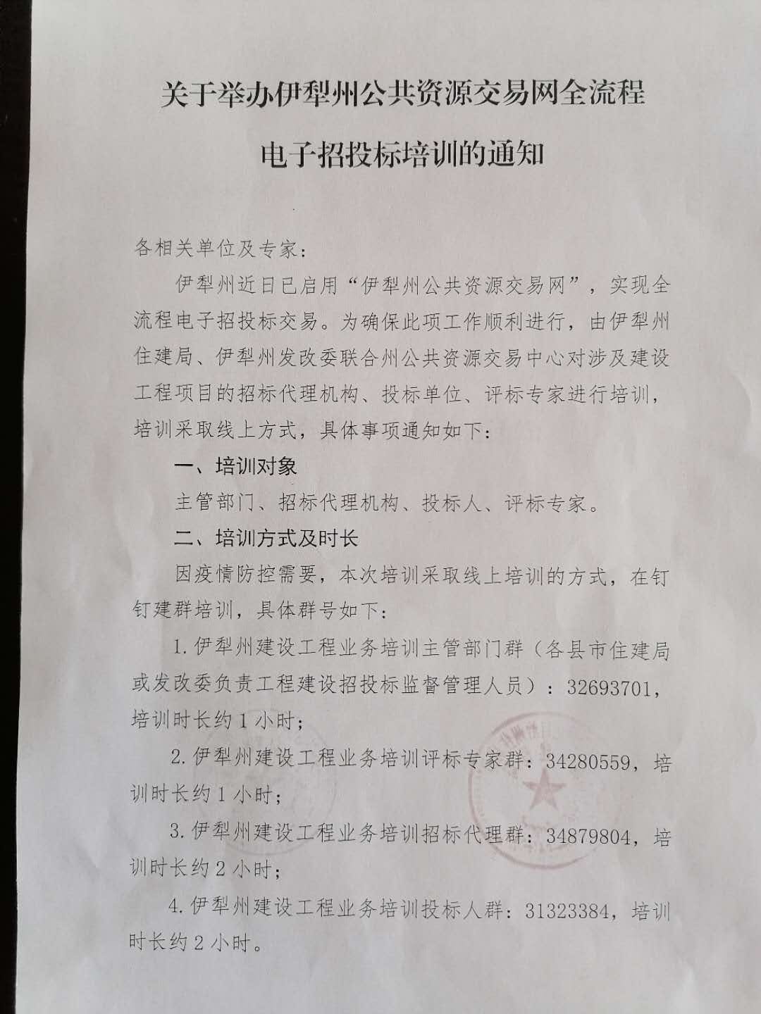 关于举办伊犁州公共资源交易网全流程电子招投标培训的通知