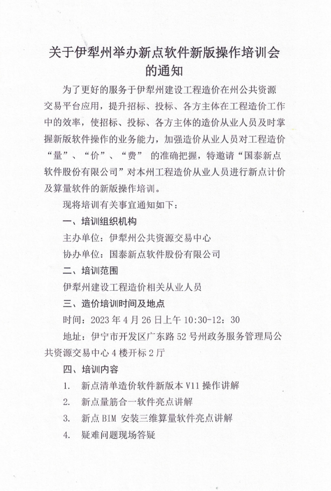 关于伊犁州举办新点软件新版操作培训会的通知