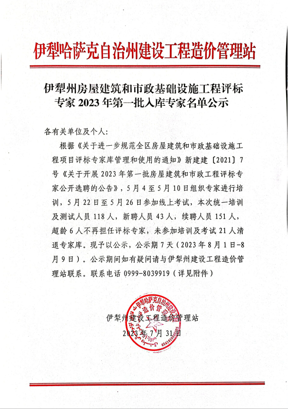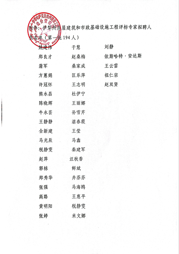 伊犁州房屋建筑和市政基础设施工程评标专家2023年第一批人库专家名单公示