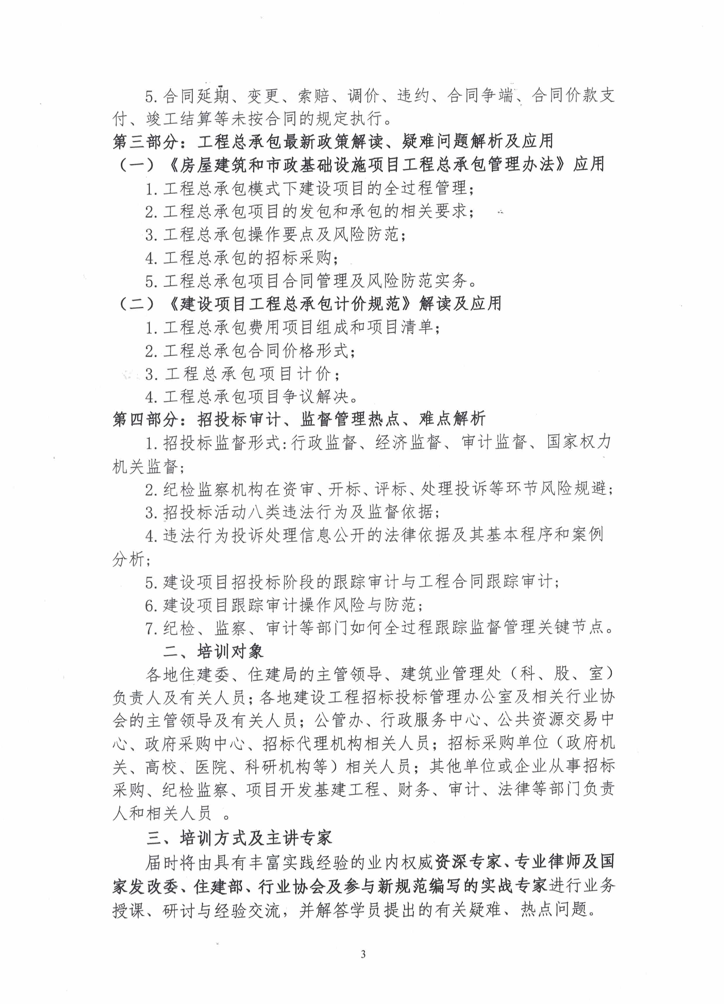 关于举办“招投标全过程实务操作与工程总承包及招投标疑难问题解析专题培训班”的通知