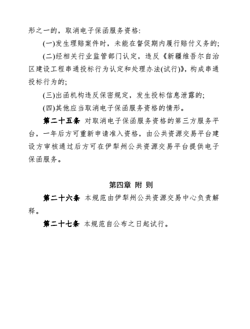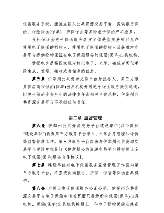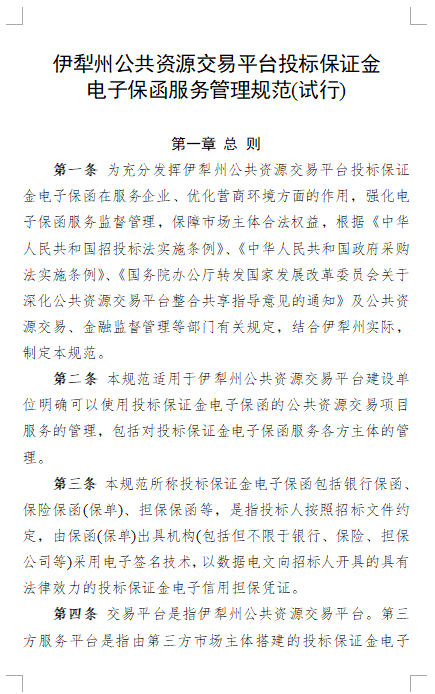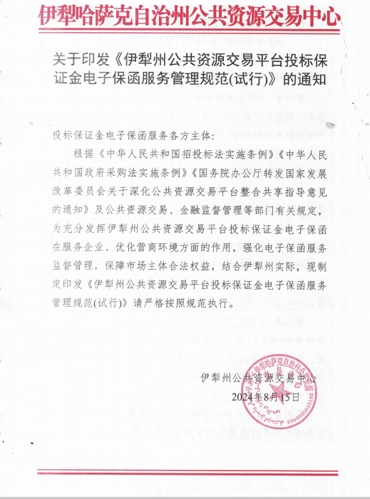 关于印发《伊犁州公共资源交易平台投标保证金电子保函服务管理规范(试行)》的通知