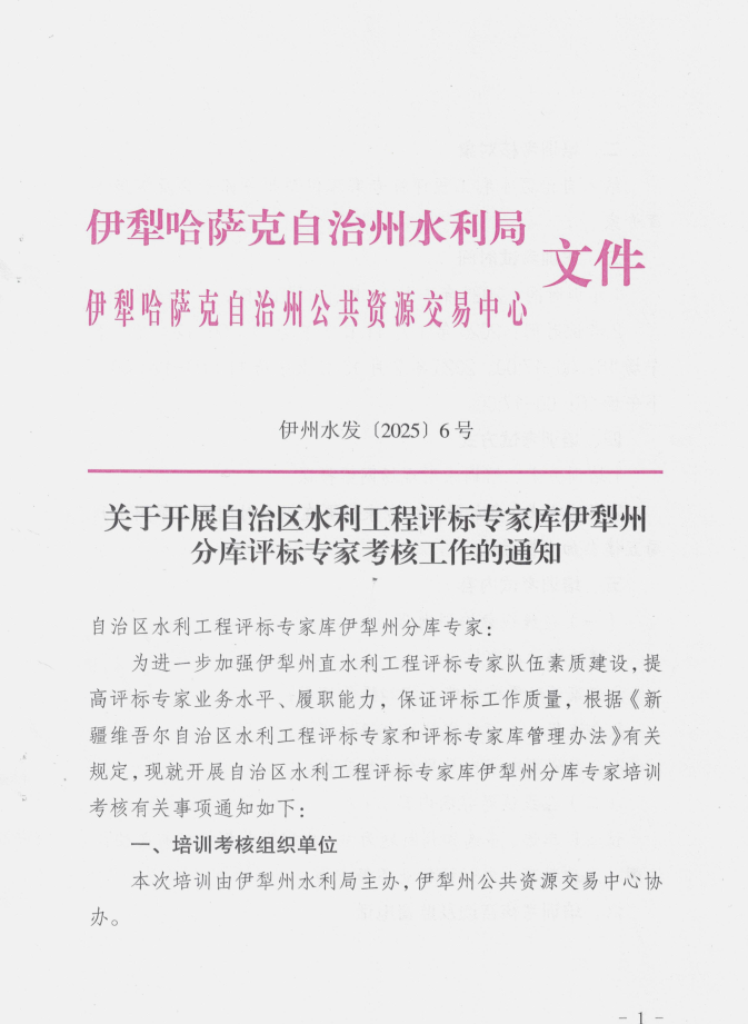 关于开展自治区水利工程评标专家库伊犁州分库评标专家考核工作的通知