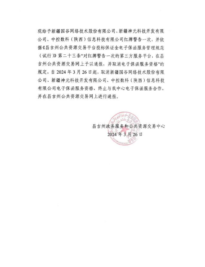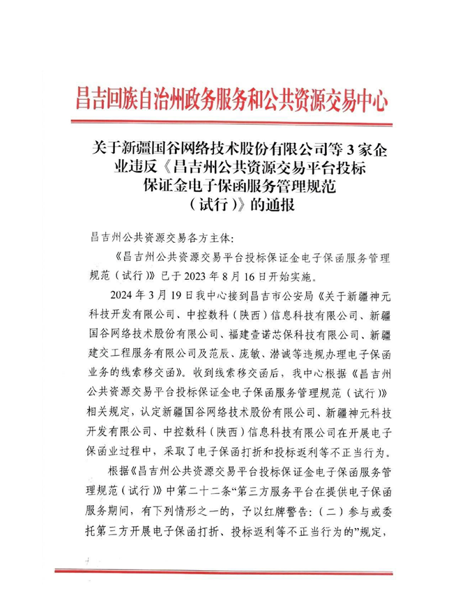关于3家企业违反《昌吉州公共资源交易平台投标保证金电子保函服务管理规范(试行)》的通报